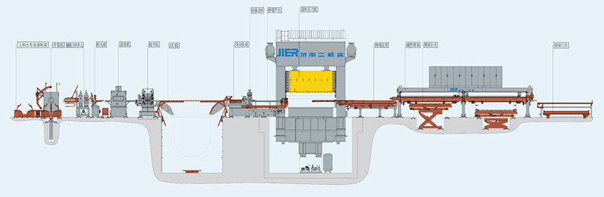 為了便于運輸和存放,汽車廠購進的鋼材為鋼卷,在加工時首先需要通過設(shè)備將鋼卷開卷、校平后經(jīng)剪切機切割成鋼板或經(jīng)落料壓力機加工成異形板材,為下一步?jīng)_壓做準備;為此我們根據(jù)用戶不同要求為客戶量體裁衣,設(shè)計、制造、系統(tǒng)集成的開卷自動化生產(chǎn)線。