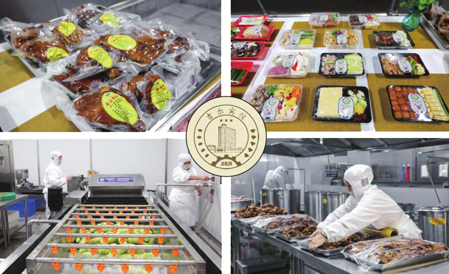 吉爾中央廚房占地近1500㎡,配備自動蔬菜清洗機、 多功能切菜機等自動化加工設備32臺套,可加工制作蒸、 炒、煎、炸等9大系列近百種產(chǎn)品,能實施專業(yè)化配送,滿 足近萬人就餐需要。
